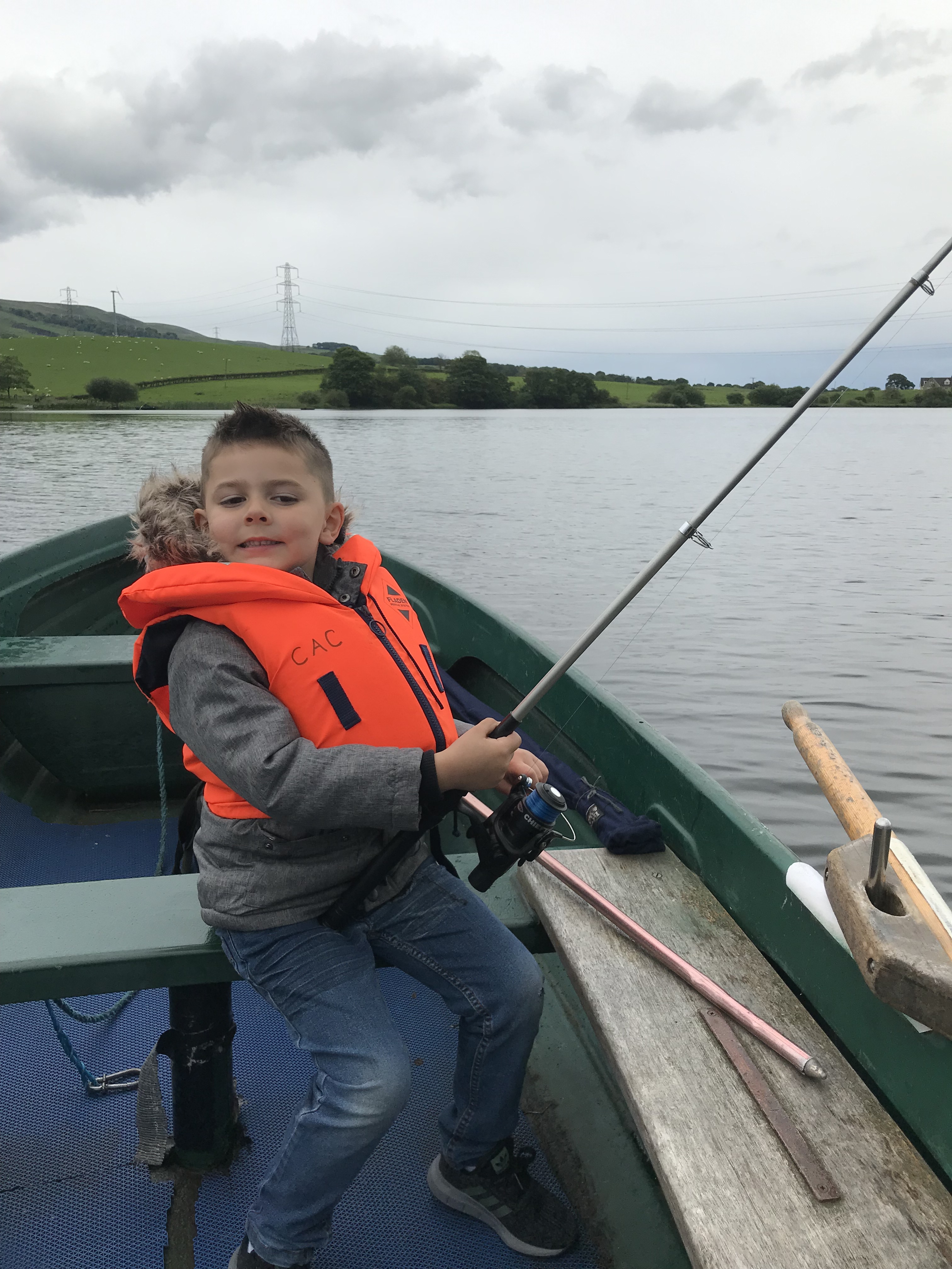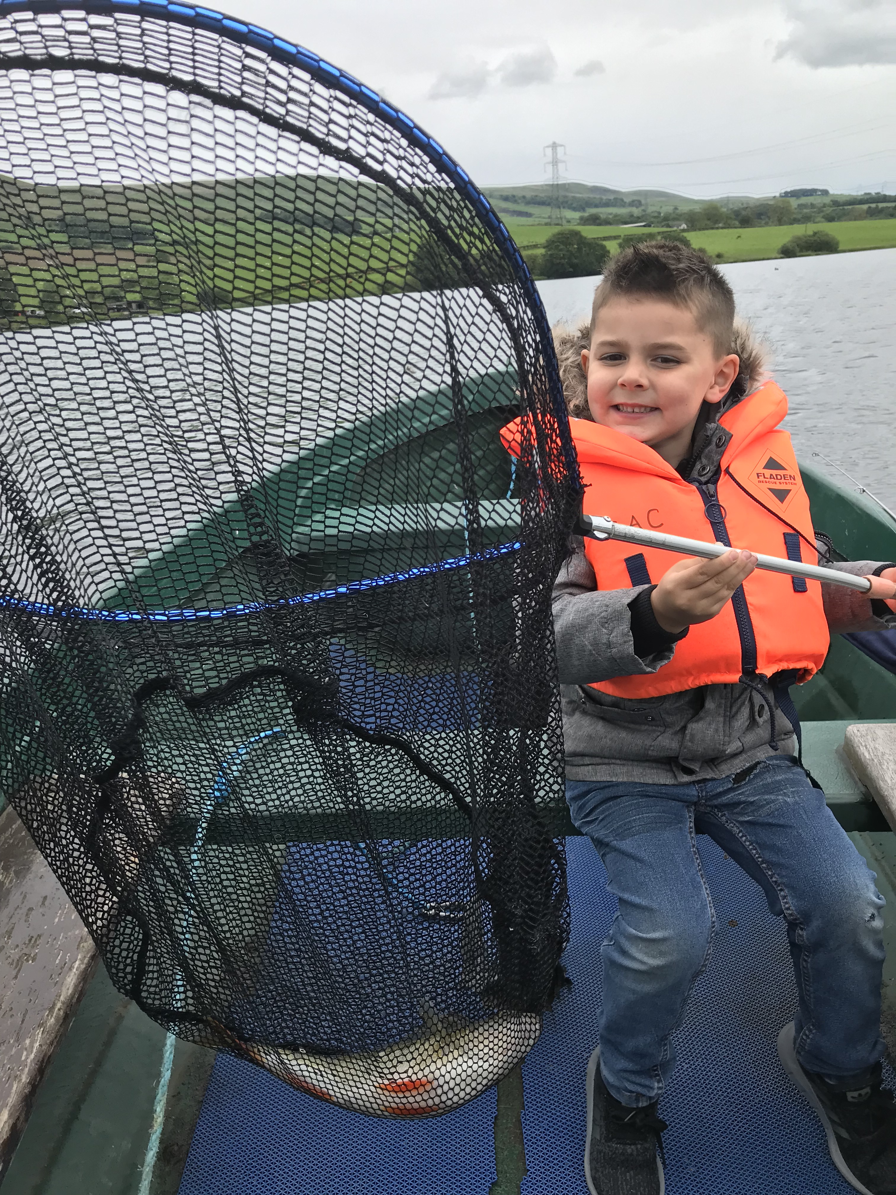 Club member James Hendrie brought his young grandson, Bradley Campbell who is 4 years old, over to the loch on Saturday for his first ever experience of fishing and he caught his first fish. Unfortunately it was one of the many perch that we currently have in the loch, but Bradley was still well chuffed as you can see from the photos below.
